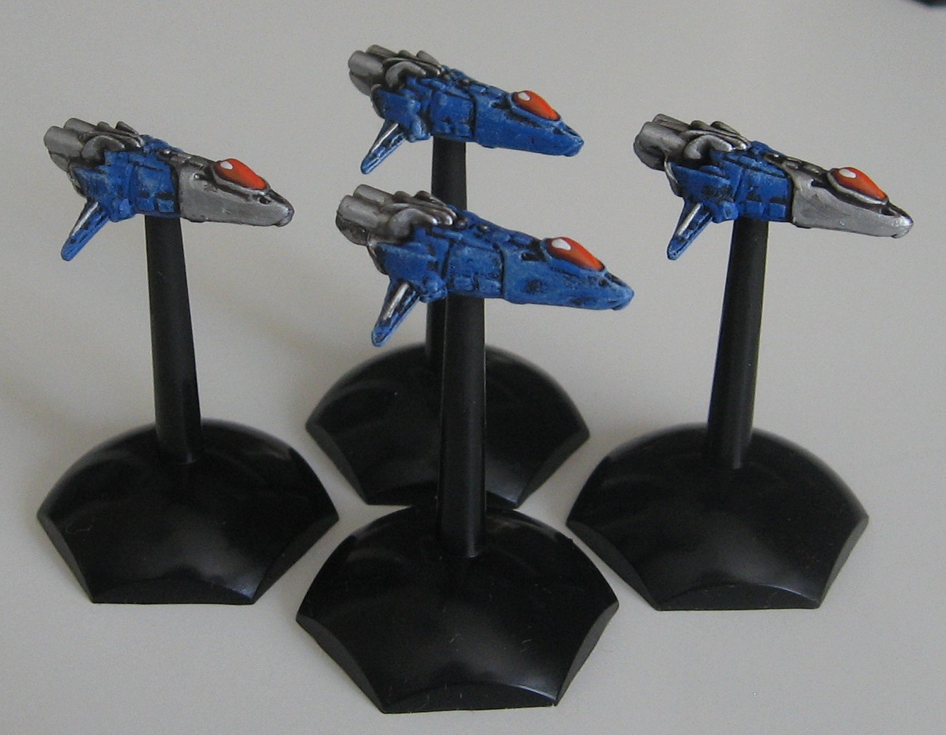 LA scatola di questo ormai vecchio gioco contiene 48 caccia spaziali in plastica. Li ho divisi in due fazioni per avere una buona scelta di modelli per ognua di esse.